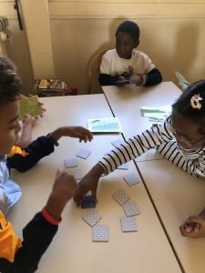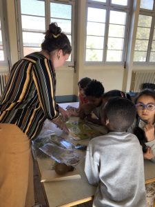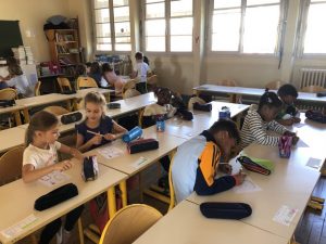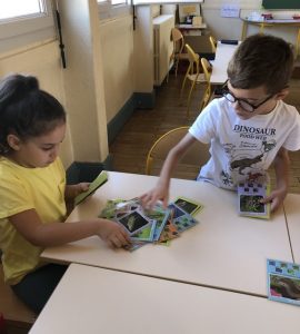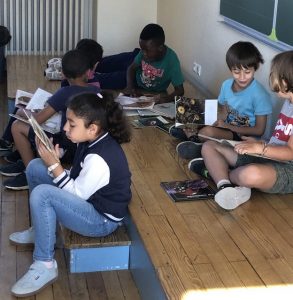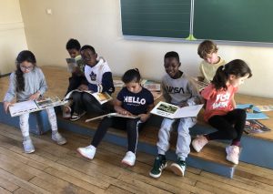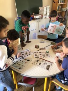 De retour en classe, on a participé à plusieurs ateliers: un atelier de livres documentaires, un atelier de coloriage/découpage d’animaux, un atelier jeux de société, un autre sur les traces d’animaux et le dernier, avec Laurie, pour aider M. rateau à recréer la biodiversité dans son jardin. »                                        La classe des CE1