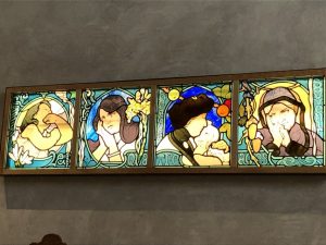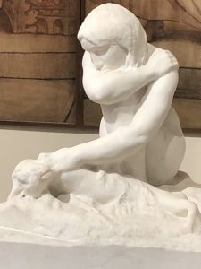 Au musée, Claire nous a guidés pour découvrir quatre oeuvres: Un tableau de Tristan et Iseult, le vitrail des « Quatre Ages », le tableau de Cléopâtre et Jules César et enfin, une sculpture d’une bergère. Nous devions chercher les émotions des personnages.